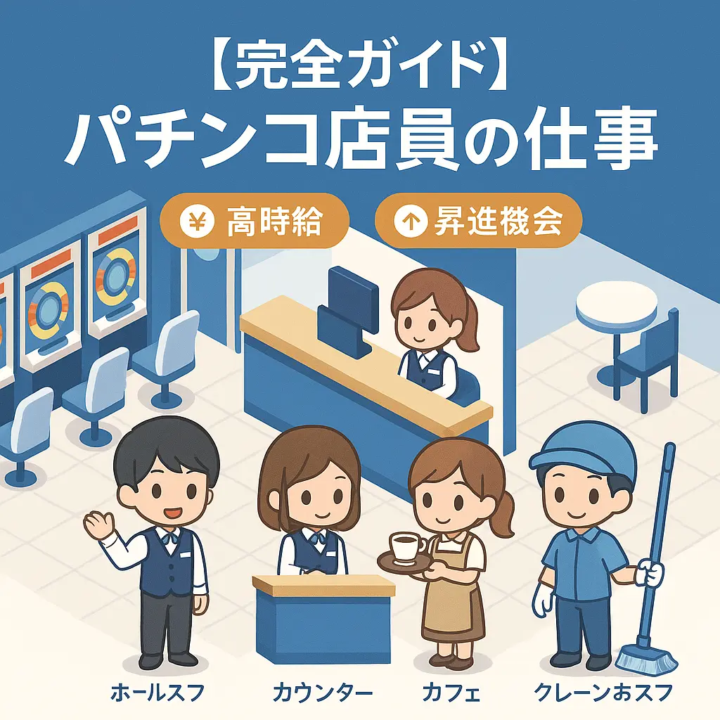 パチンコ店員として働くことを検討している方にとって、実際の仕事内容や労働環境を理解することは非常に重要です。私自身、サービス業界での経験を通じて、パチンコ店での勤務には独特の魅力と課題があることを実感しています。高時給で知られるパチンコ店のアルバイトですが、その実態は意外と知られていません。 パチンコ業界は日本独自の娯楽産業として、全国に約7,600店舗が営業しており、約26万人の従業員が働いています。この記事では、パチンコ店員として働く際の具体的な業務内容から、向いている人の特徴、そして実際の労働条件まで、求職者が知りたい情報を包括的にお伝えします。 この記事で学べること パチンコ店員の平均時給は1,200円〜1,500円で他業種より20%高い ホールスタッフの離職率は3ヶ月以内で約40%という現実 騒音レベル90dB環境でも快適に働ける3つの対策法 未経験者でも月収25万円以上を稼ぐための具体的な方法 パチンコ業界でのキャリアパスと将来性の実態 パチンコ店員の4つの主要職種と具体的な業務内容 パチンコ店での仕事は、大きく4つの職種に分かれています。それぞれの職種には独自の役割があり、求められるスキルも異なります。 ホールスタッフ:店舗運営の中核を担う存在 ホールスタッフは、パチンコ店で最も求人数が多い職種です。 主な業務内容として、パチンコ台や景品交換機の管理・メンテナンス、お客様への接客対応、景品の補充と管理、店内清掃と整備、現金管理、営業活動のサポートなどがあります。個人的な経験では、特に土日祝日は来店客数が平日の1.5倍以上になるため、体力的にもハードな面があります。 朝番シフトの場合、開店前の準備作業から始まり、パチンコ台の動作確認、玉やメダルの補充、清掃作業を行います。営業中は、お客様からの呼び出しに対応し、玉運びやドル箱の交換、トラブル対応などを行います。 💡 実体験から学んだこと 初めてホールスタッフとして働いた時、1日で2万歩以上歩いたことに驚きました。運動不足解消にもなり、3ヶ月で体重が5kg減少したという嬉しい副産物もありました。 カウンタースタッフ:景品交換のスペシャリスト カウンタースタッフは、お客様が獲得した玉やメダルを景品と交換する業務を担当します。 正確な計数と迅速な対応が求められ、金銭管理の責任も重大です。景品の在庫管理や発注業務も担当し、人気商品の動向を把握しながら適切な在庫量を維持する必要があります。 カフェスタッフ:店内飲食サービスの提供 大型店舗では、店内にカフェスペースを設けている場合があります。 カフェスタッフは、軽食や飲み物の提供、オーダー管理、清掃などを担当します。パチンコホールの騒音から離れた環境で働けるため、接客に集中できるメリットがあります。 清掃スタッフ:快適な環境作りのプロフェッショナル 清掃スタッフは、店内の清潔さを維持する重要な役割を担っています。