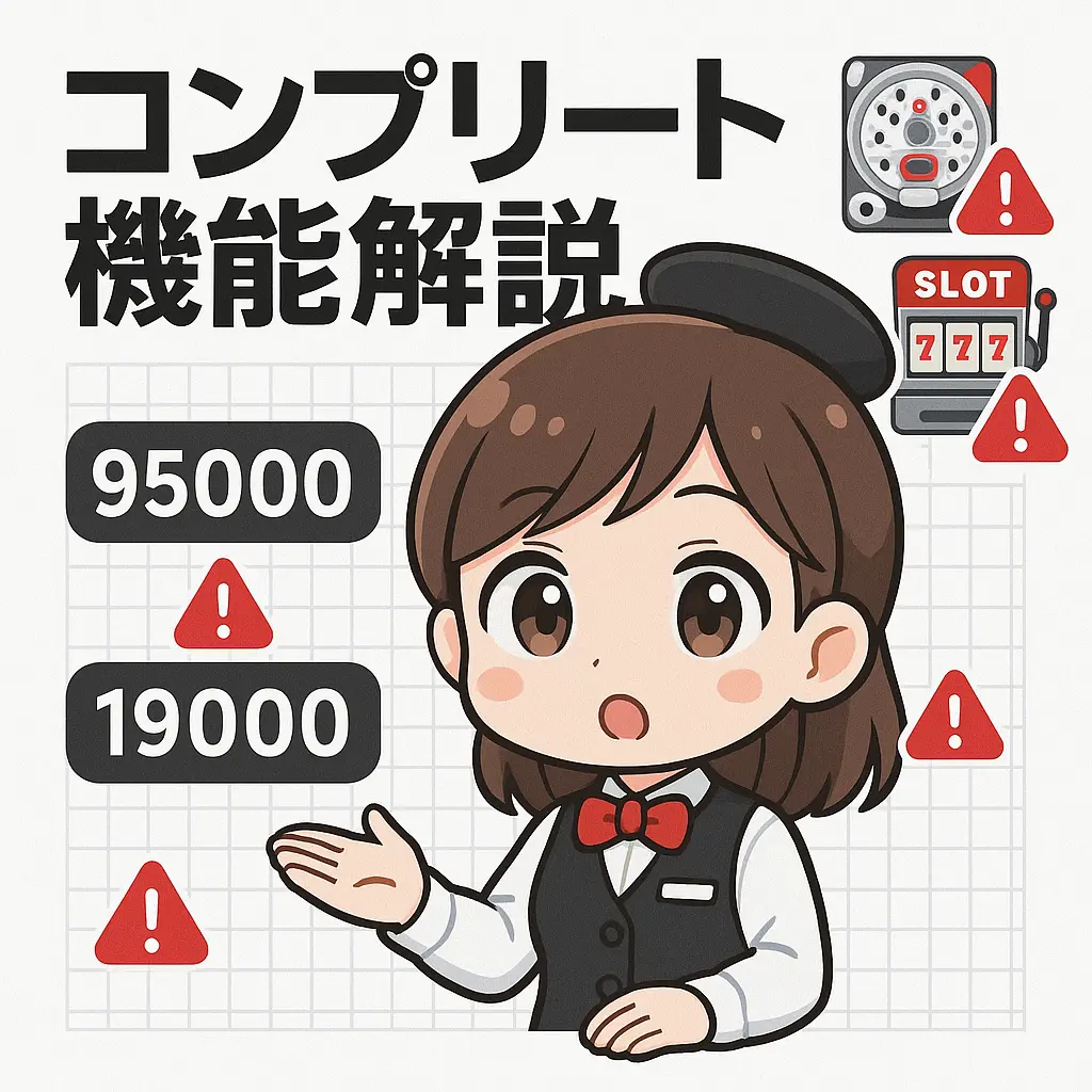 コンプリート機能は「差枚数管理」という方式を採用しています。これは、遊技中の最低枚数を基準に、そこからの上昇分をカウントする仕組みです。